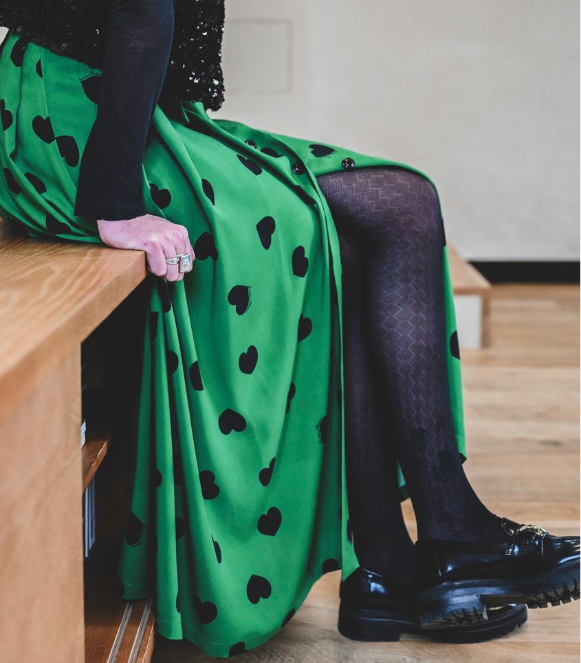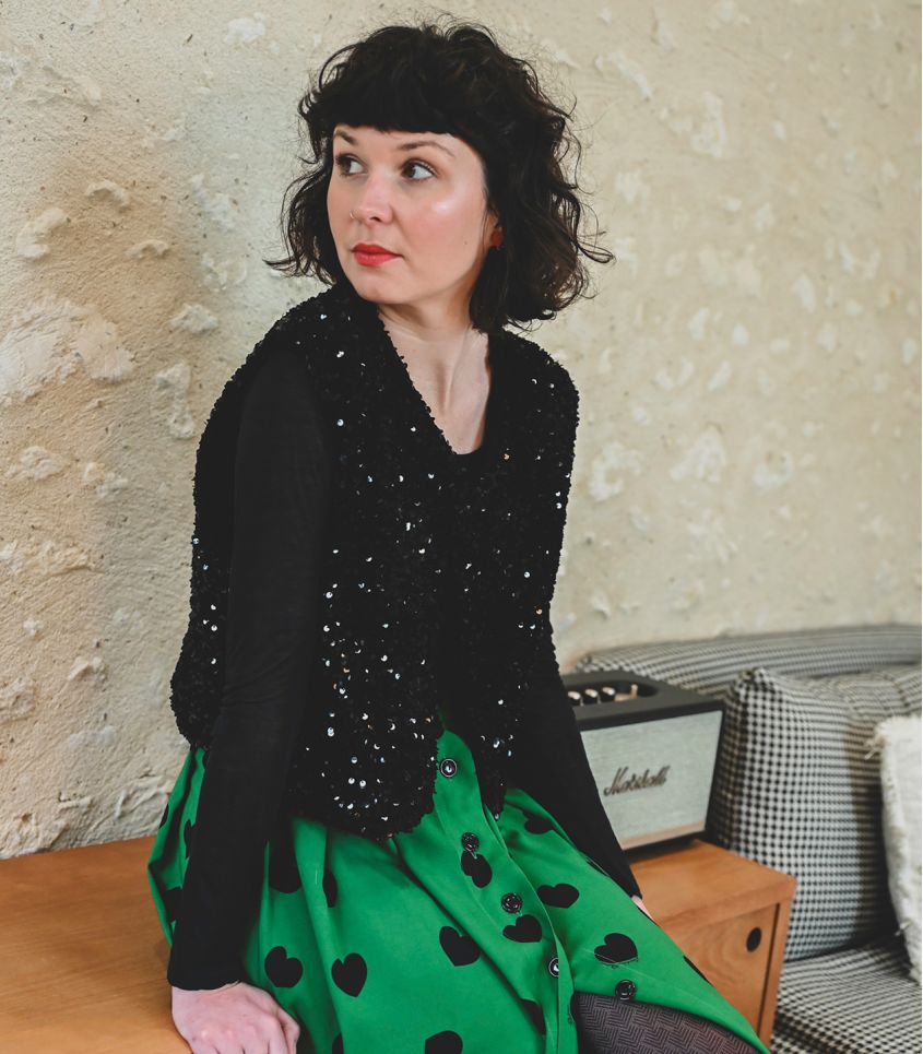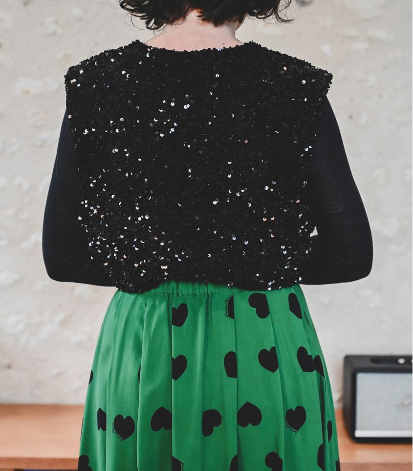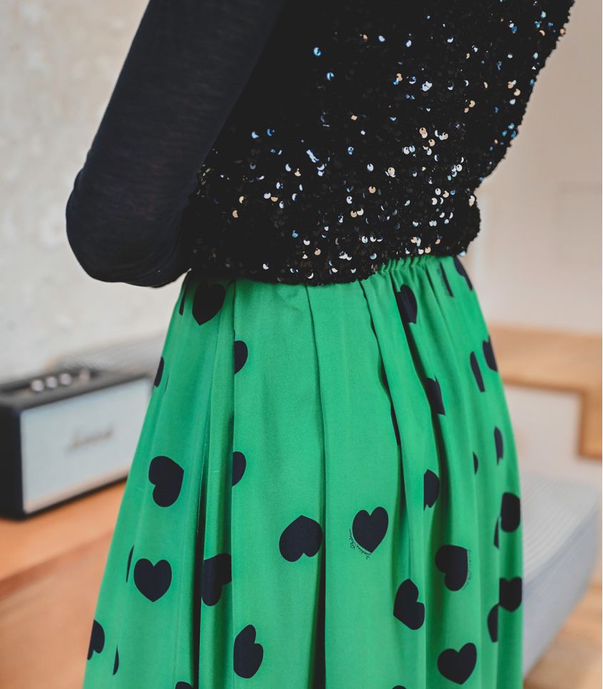 - 1m90 de viscose verte à cœurs noirs (viscose écovero imprimé en France).