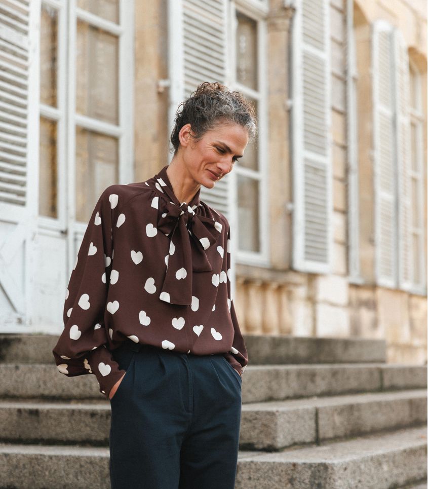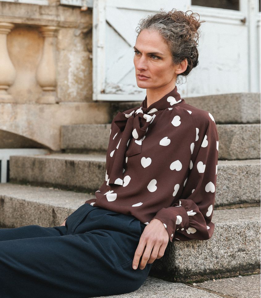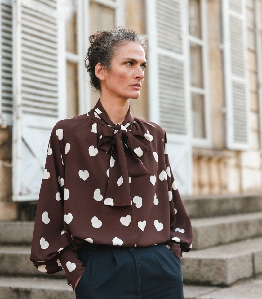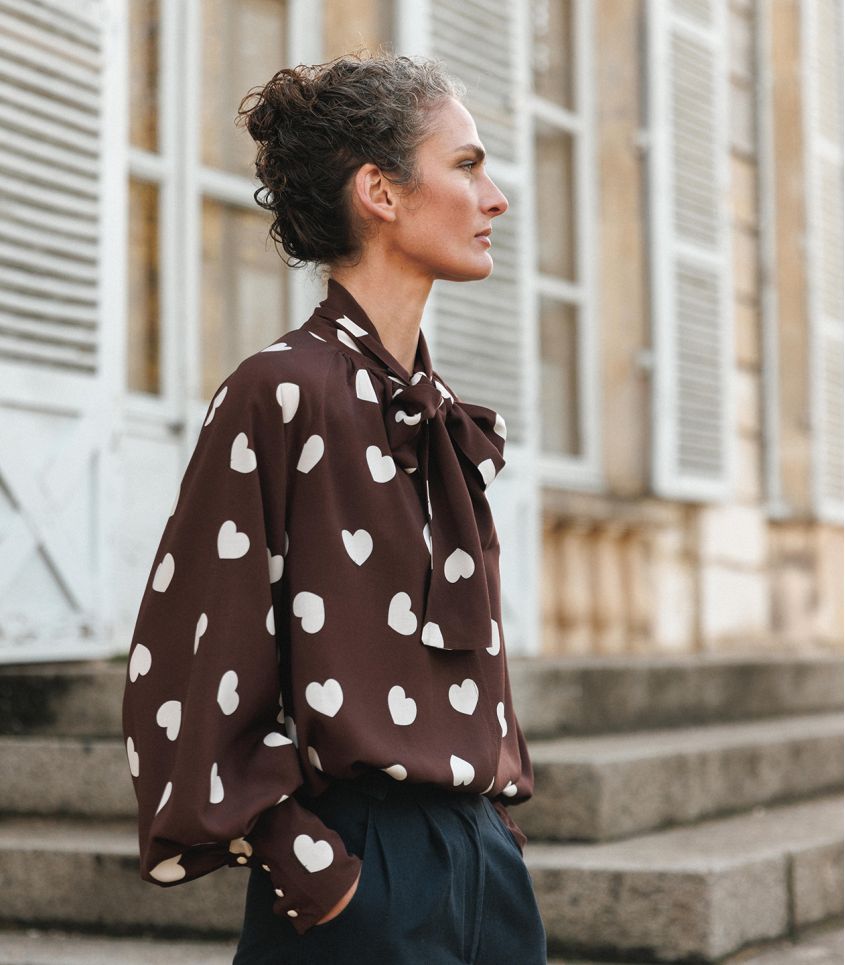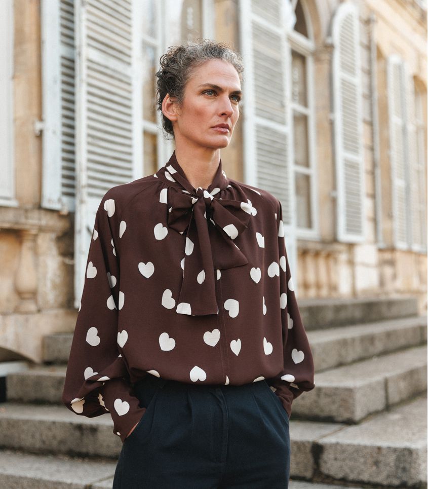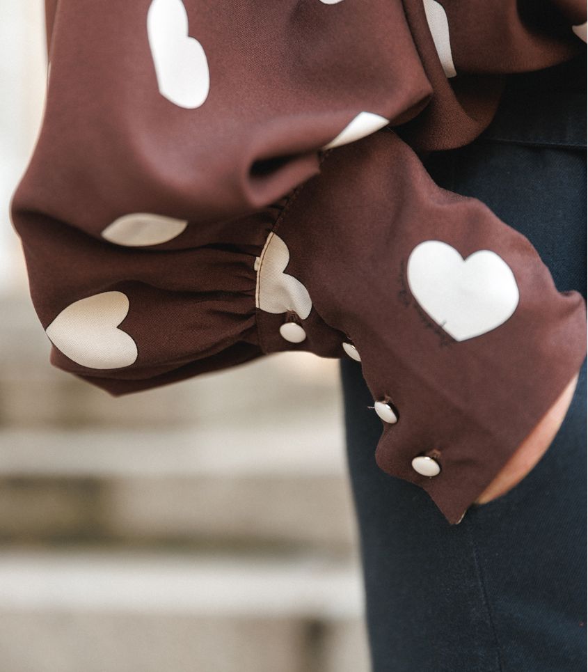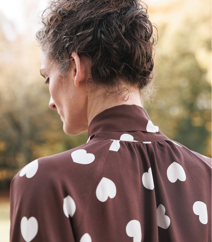 Pour cet hiver nous avons choisi l'imprimé coeur iconique de Léopoldine sur fond Chocolat.