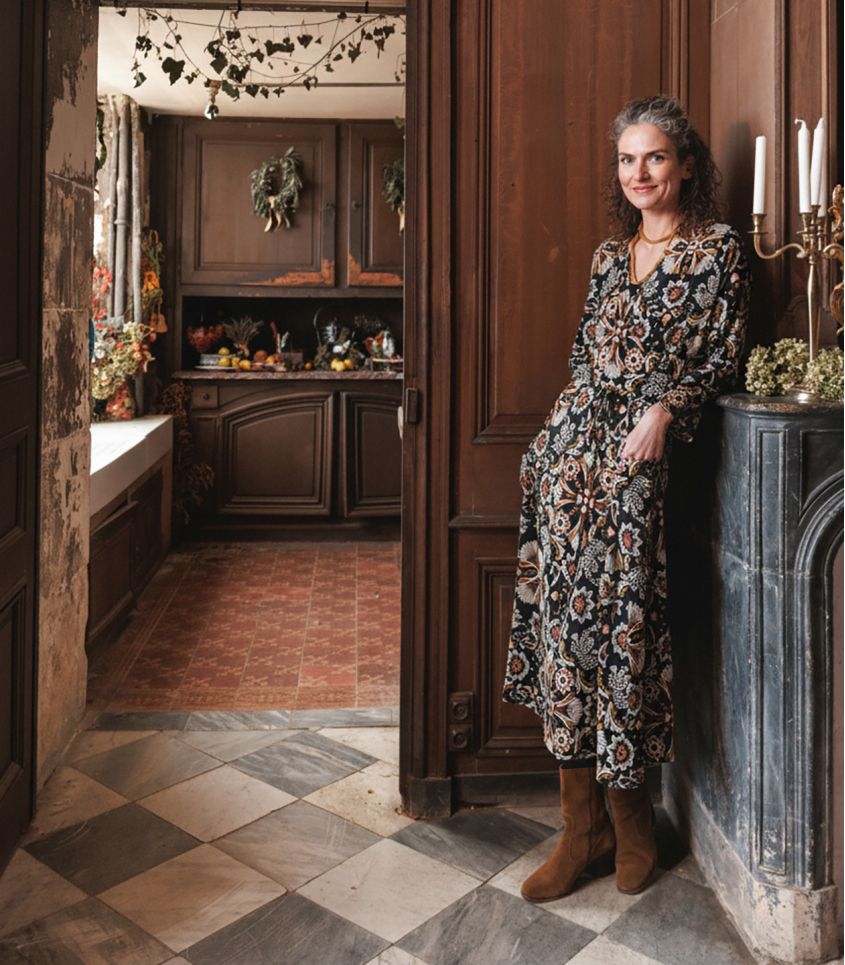 Avec sa coupe cache-coeur, son décolleté subtil et sa jupe qui ondule à chaque pas, elle incarne une féminité douce, assumée et intemporelle.