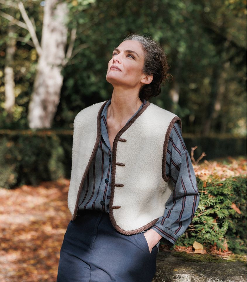 Biquette, c’est le gilet tout doux, tout chaud, qui apporte instantanément une touche cosy à vos silhouettes hivernales. Une pièce simple, sensorielle et charmante, qui rappelle les gilets de berger traditionnels tout en restant résolument moderne.