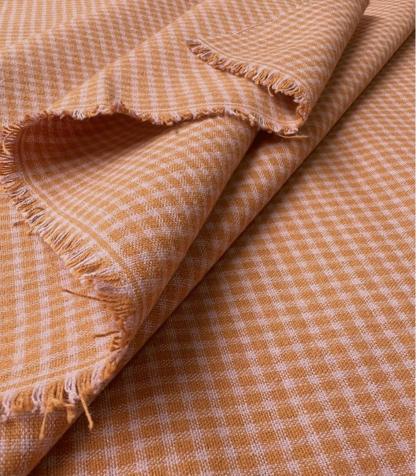 Son motif vichy bicolore rose et ambre apporte une touche de douceur et de lumière aux longues journées d'hiver, parfaite pour la confection de chemises, pyjamas ou blouses cocooning.