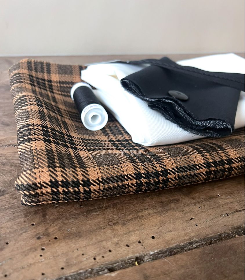 - 80cm de Tissu à carreaux toffee - composition : 100% polyester - Laize 140cm - Poids 230g/m²