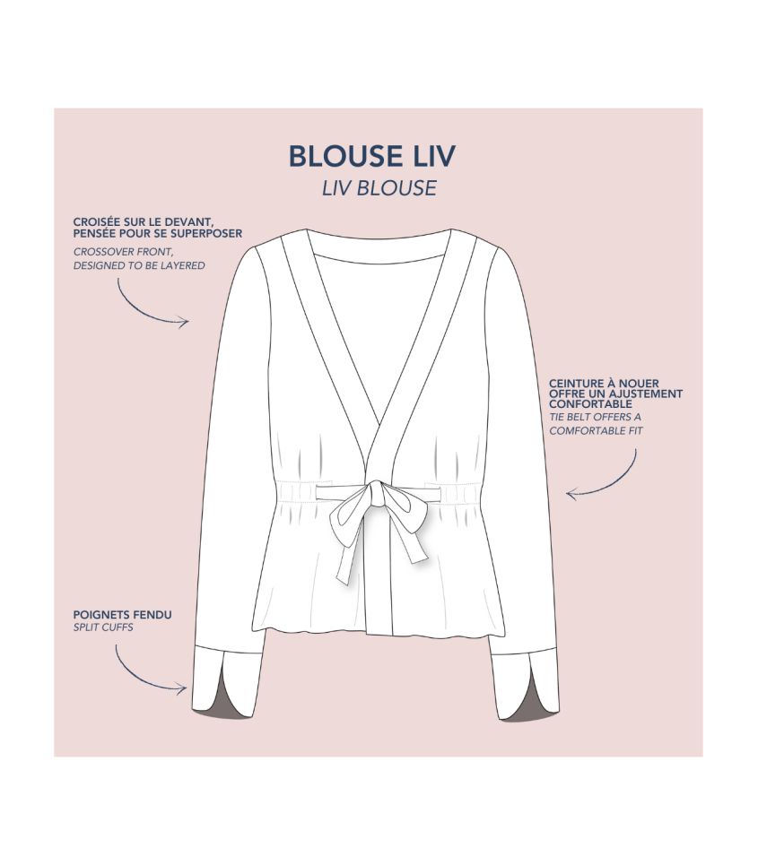 https://www.cousette.com/patron-blouse-liv.html 19336 Patron blouse Liv https://www.cousette.com/33121/patron-blouse-liv.jpg 17.9 17.9 EUR InStock Accueil/Nouveautés/ Accueil/Patrons de couture/ Accueil/Patrons de couture/Les modèles / Accueil/Patrons de couture/Par Genre/ Accueil/Patrons de couture/Par Genre/Femmes/ Accueil/Patrons de couture/Par niveau de couture/ Accueil/Patrons de couture/Par niveau de couture/Intérmédiaire/ Accueil/Patrons de couture/Marques de patrons/ Accueil/Patrons de couture/Les modèles /Chemises & blouses/ Accueil/Tissus/Tissus par marque/Lise Tailor/ Accueil/Patrons de couture/Marques de patrons/Lise Tailor/ <p>Patron blouse Liv par Lise Tailor, La Blouse Liv combine élégance et simplicité. Avec son encolure légèrement arrondie, ses fines pinces poitrine et son corps fluide, elle crée une silhouette douce et raffinée. Léger, fluide et confortable, ce patron est idéal pour réaliser une blouse chic, facile à porter en toute saison.</p><p><strong>Ce qui rend ce patron unique :</strong></p><ul> <li data-end="179" data-start="122">Encolure arrondie et coupe fluide pour un tombé élégant</li> <li data-end="243" data-start="182">Manches 3/4 légèrement froncées : féminines et confortables</li> <li data-end="299" data-start="246">Patte de boutonnage fine pour une finition délicate</li> <li data-end="366" data-start="302">Empiècement dos avec plis : volume maîtrisé et allure raffinée</li> </ul> <p><u>Fournitures nécessaires :</u></p><ul> <li> <p><b>Fournitures</b></p><p>Pour réaliser ce modèle nous vous conseillons d’utiliser un tissu fluide par exemple une viscose, idéalement à laize ≥ 140 cm.</p><table width="1189"> <tbody> <tr> <td width="319">Taille</td> <td width="87"><strong>34</strong></td> <td width="87"><strong>36</strong></td> <td width="87"><strong>38</strong></td> <td width="87"><strong>40</strong></td> <td width="87"><strong>42</strong></td> <td width="87"><strong>44</strong></td> <td width="87"><strong>46</strong></td> <td width="87"><strong>48</strong></td> <td width="87"><strong>50</strong></td> <td width="87"><strong>52</strong></td> </tr> <tr> <td>Tissu laize 140cm</td> <td>1,70m</td> <td>1,70m</td> <td>1,70m</td> <td>1,70m</td> <td>1,70m</td> <td>1,70m</td> <td>1,70m</td> <td>1,90m</td> <td>1,90m</td> <td>1,90m</td> </tr> <tr> <td><a href="https://www.cousette.com/stabilmanche-blanc-t12.html">Stabilmanche</a></td> <td colspan="10">30 cm</td> </tr> <tr> <td><a href="https://www.cousette.com/entoilage-thermocollant-blanc-g785.html">Thermocollant – Type G785</a></td> <td colspan="10">30 cm</td> </tr> <tr> <td><a href="https://www.cousette.com/mercerie/decorer-customiser/boutons-oeillets-pressions/">Bouton</a></td> <td colspan="10">1 bouton de 8 à 10mm</td> </tr> <tr> <td><a href="https://www.cousette.com/elastique-25mm.html">Elastique 2,5 cm</a></td> <td>34,3</td> <td>35,8</td> <td>37,2</td> <td>38,7</td> <td>40,1</td> <td>41,6</td> <td>43</td> <td>46,6</td> <td>48,8</td> <td>51</td> </tr> </tbody> </table> </li> </ul><p></p><ul> <li>Explication avec croquis</li> <li>Tailles fournies S au XXL</li> <li>Marges de coutures incluses</li> <li><span>Niveau intermédiaire </span></li> <li>Patrons tailles réelles sans superposition de pièces</li> </ul> https://www.cousette.com/33119/patron-blouse-liv.jpg https://www.cousette.com/33120/patron-blouse-liv.jpg https://www.cousette.com/33122/patron-blouse-liv.jpg https://www.cousette.com/33123/patron-blouse-liv.jpg https://www.cousette.com/33124/patron-blouse-liv.jpg add-to-cart Lise Tailor Oeko-Tex Standard 100 Tops & T-shirts, Sweatshirt Intermédiaire Delais de livraison , Conseils Cousette, Paiement sécurisé Marques Lise Tailor 21 1180 Certificats Oeko-Tex Standard 100 25 246 Patrons par thème Tops & T-shirts, Sweatshirt 10 87 Niveau Intermédiaire 31 417 Réassurance Delais de livraison , Conseils Cousette, Paiement sécurisé 33 425 417 Intermédiaire
