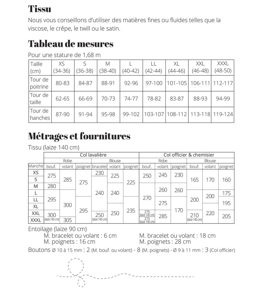 - Marges de coutures incluses