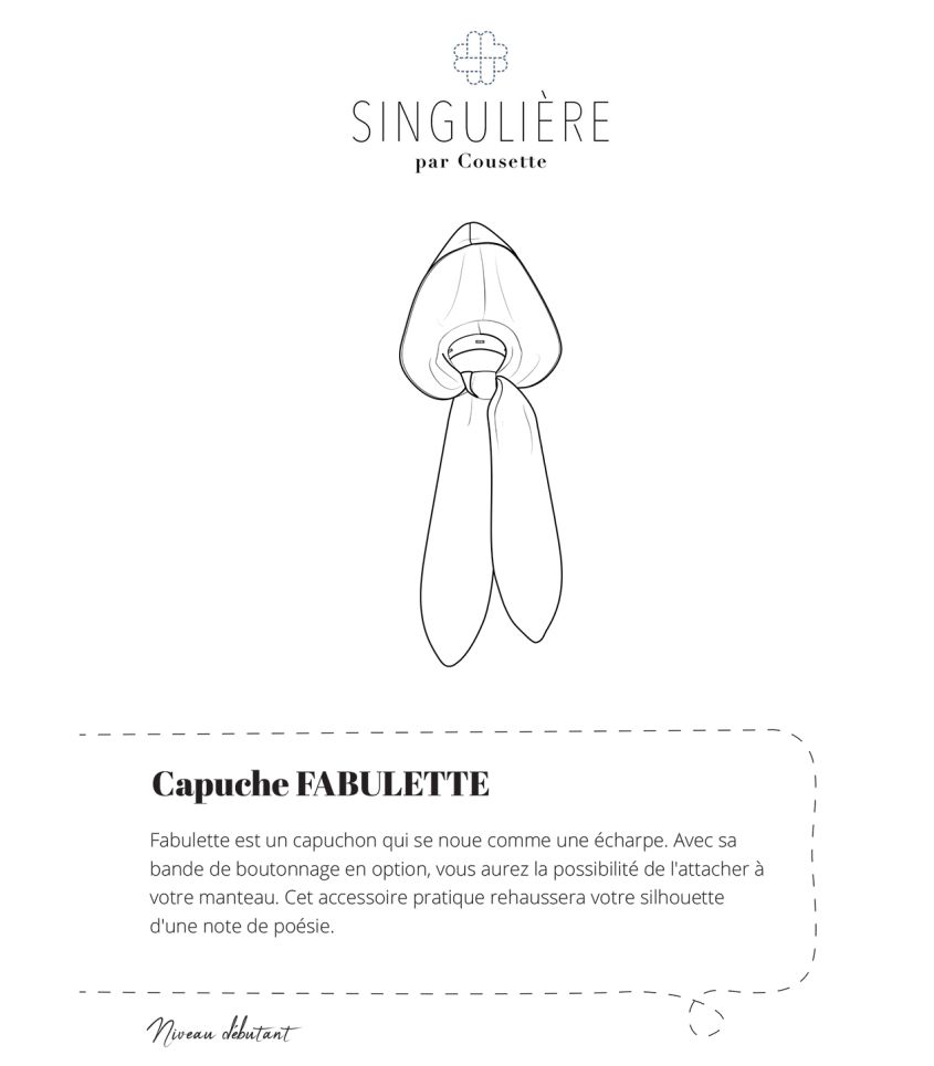 Patron capuche amovible Fabulette Singulière par Cousette.