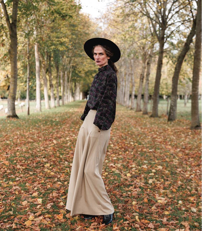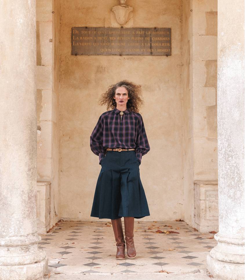 Devinette est une pièce pleine de caractère, à mi-chemin entre le pantalon ample et la jupe-culotte. Sa coupe élégante est rythmée par deux plis marqués sur le devant, qui apportent volume et mouvement à la silhouette.
