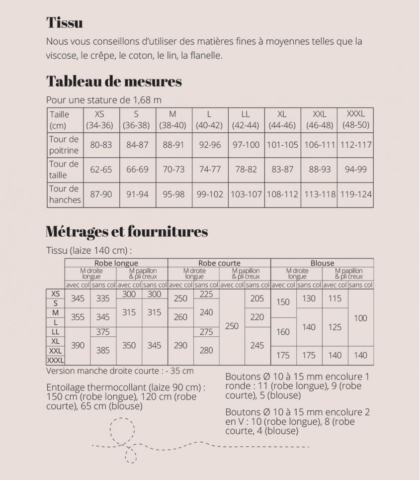 - Patron taille réelle, PDF imprimable format A4 : prévoir 33 pages pour le patron de la et 6 pages d'explications.