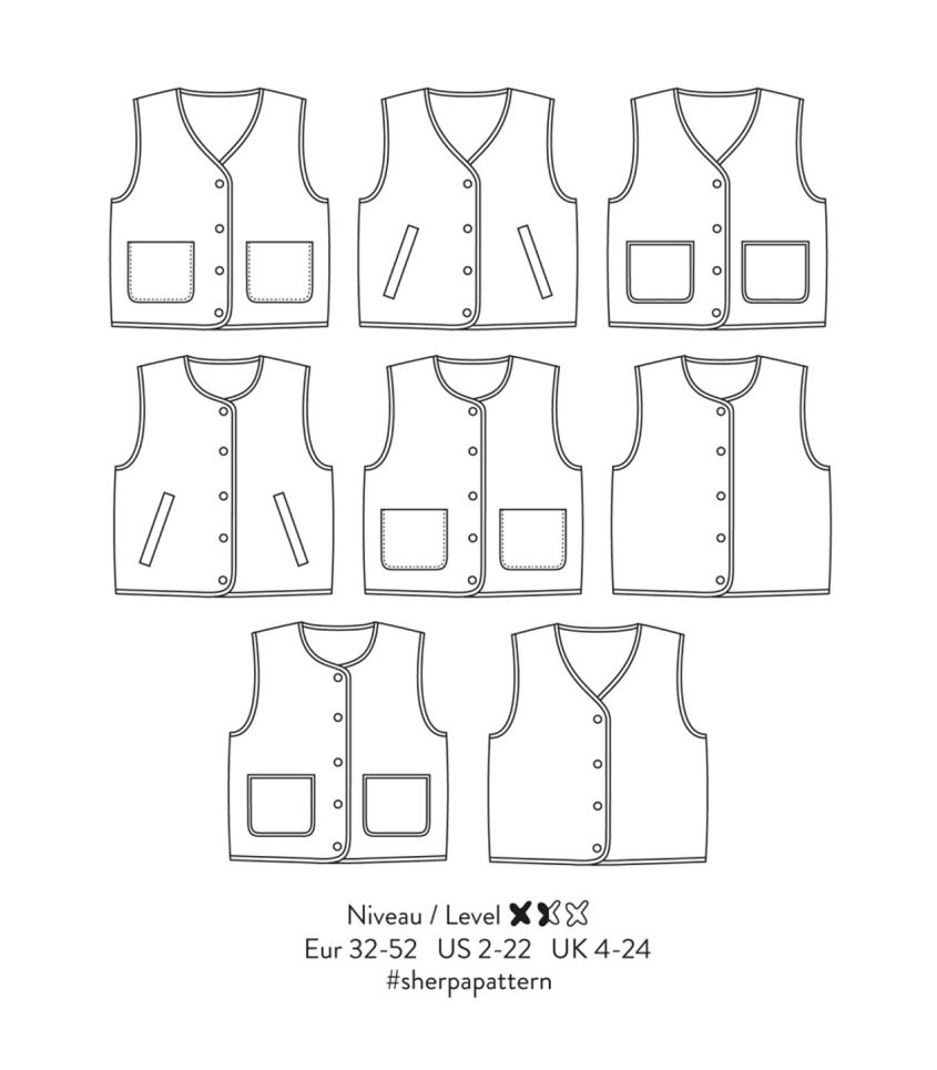 Le patron "Sherpa" d'Atelier Scämmit Hyper douillet et confortable, ce gilet sans manche propose une finition gansée sur son pourtour, en plus d’une fermeture boutonnée.
