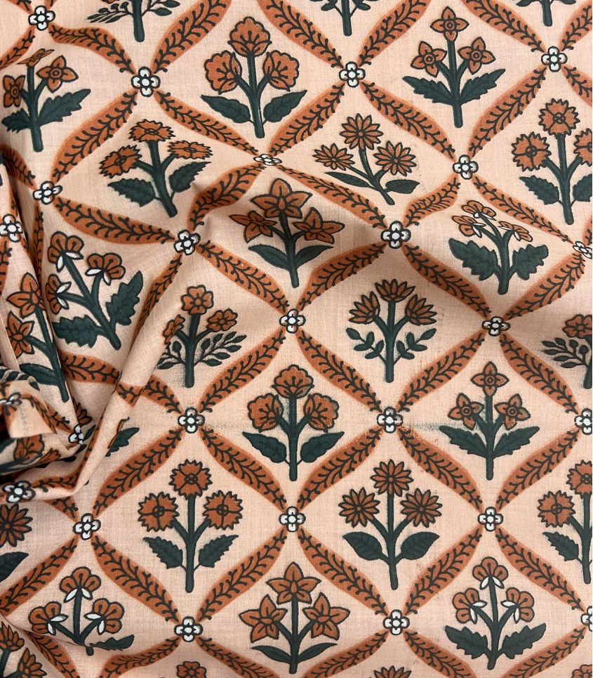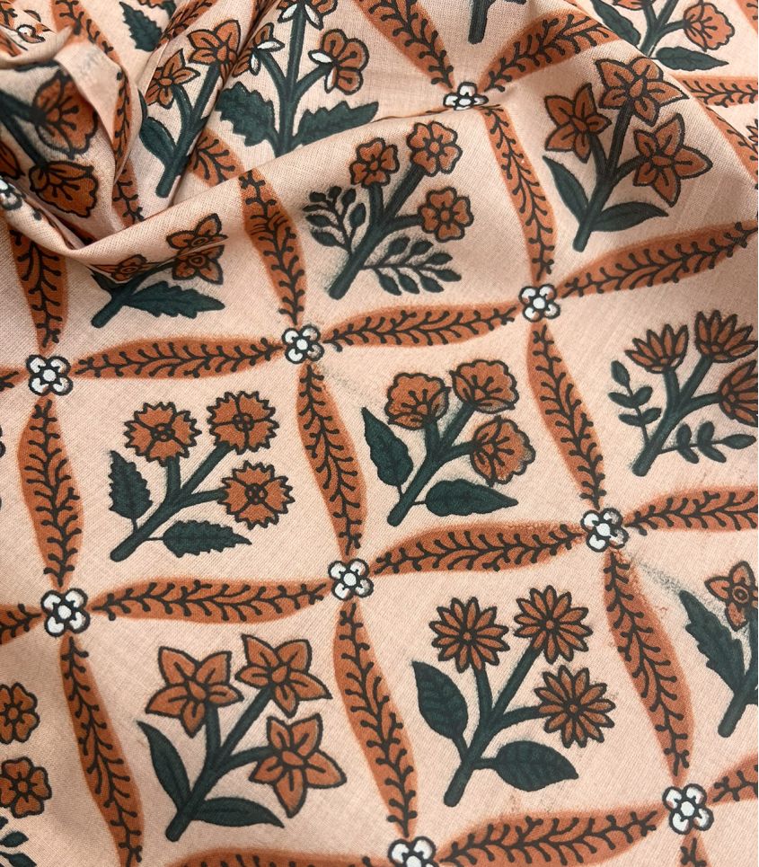 Tissu blockprint - Fleurs Camel
