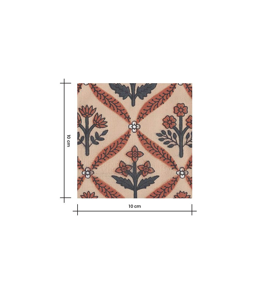 Chaque motif est réalisé à la main à l’aide de blocs de bois sculptés, avec une application couleur par couleur, créant de subtils effets de superposition. Chaque métrage est unique : de légères variations de teinte ou d’impression témoignent de l’authenticité et du savoir-faire artisanal qui rendent ce tissu si précieux.