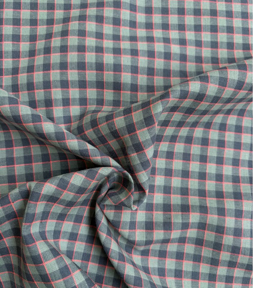 Tissu à carreaux en coton teint fil (les carreaux sont tissés et non imprimé). Motif on en peut plus classique rehaussé d'une ligne rose fluo qui vient apporter une touche d'originalité et de fun.