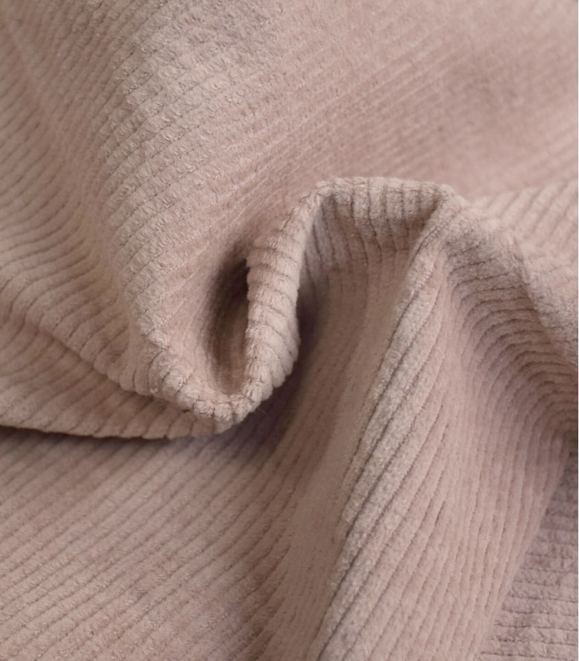 Velours grosses côtes Poudre. Tissu d'une très jolie qualité, moelleux et souple. L'élasthanne en fait un tissus idéal pour la réalisation de pantalons. A utiliser pour la réalisation de jupes, pantalons, vestes...