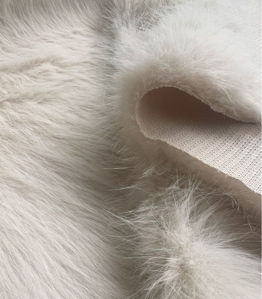 Tissu en fausse fourrure à longs poils crème, il est idéal pour celles et ceux qui recherchent à la fois chaleur, confort et élégance.