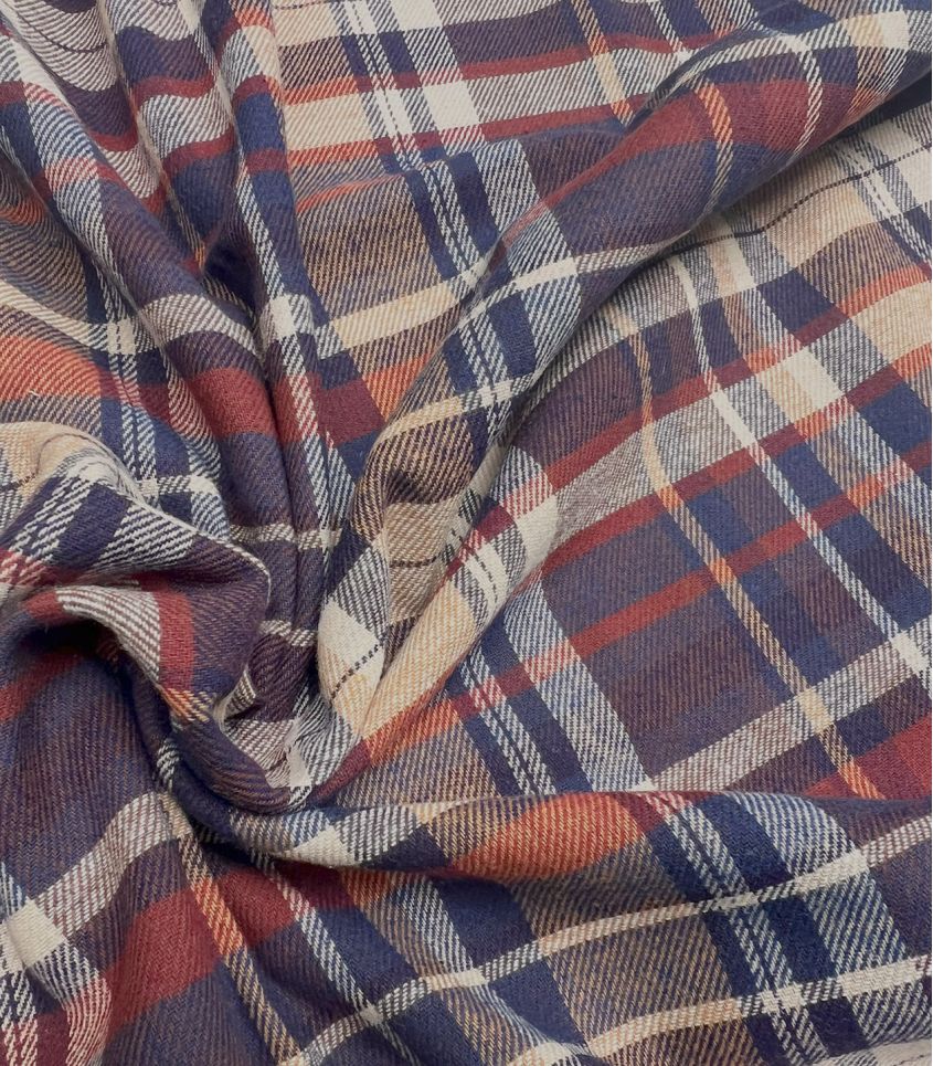Apportez une touche chic et structurée à vos créations couture avec cette flanelle à carreaux dans un élégant coloris navy, beige et chocolat. Le motif est tissé dans la matière même (teinture fil), apportant une belle profondeur de couleur et une grande tenue. Le léger brossage de la surface confère une douceur subtile au toucher, tout en offrant un fini raffiné.