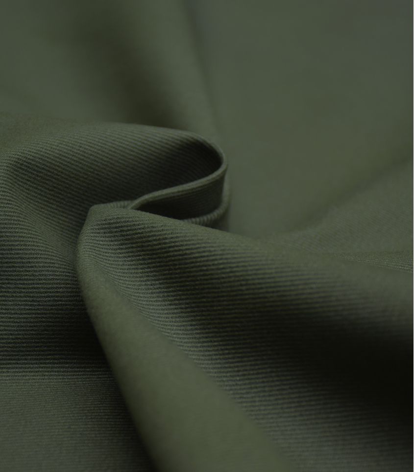 Tissu en gabardine de coton lourde, coloris Vert Fougère. Gabardine épaisse mais bien souple, une étoffe solide, résistante et d’une douceur exceptionnelle qui se caractérise par un un tissage twill (sergé), aux mêmes propriétés esthétiques qu'un jean. Idéal pour réaliser des pantalons, des shorts, vestes ...