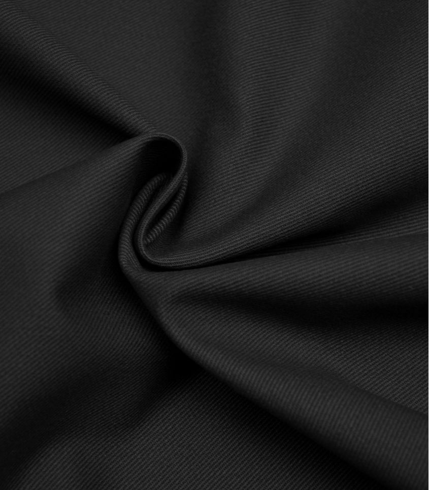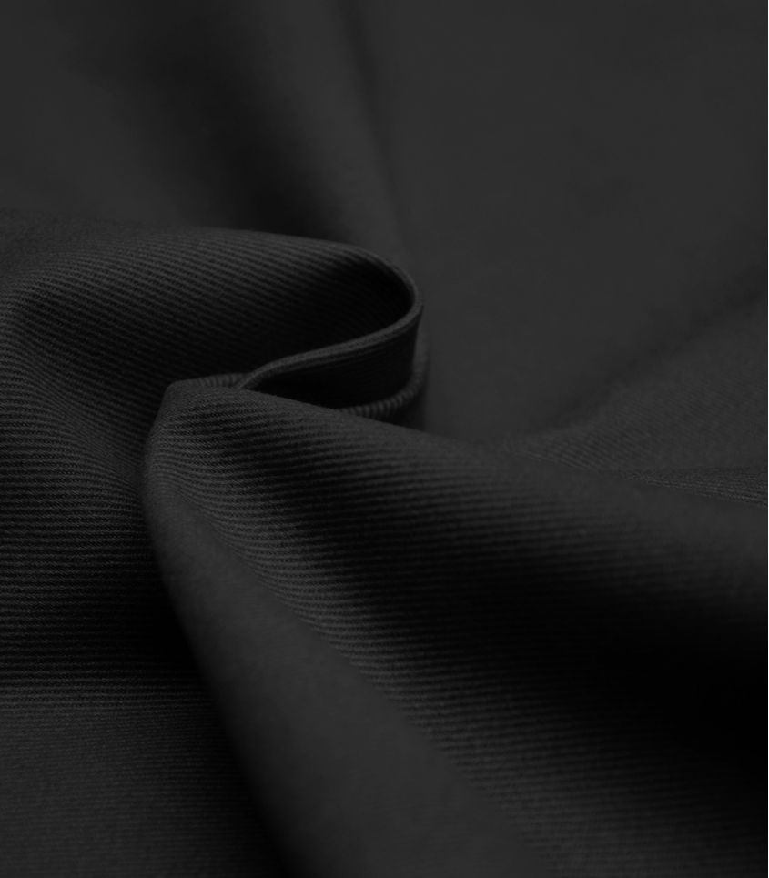 Tissu en gabardine de coton lourde, coloris Noire. Gabardine épaisse mais bien souple, une étoffe solide, résistante et d’une douceur exceptionnelle qui se caractérise par un un tissage twill (sergé), aux mêmes propriétés esthétiques qu'un jean. Idéal pour réaliser des pantalons, des shorts, vestes ...