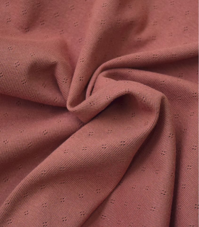 Des jours entre les mailles dessinent des motifs délicats, presque dentelle. Idéal pour les cache-cœurs, les t-shirts romantiques, les articles pour enfants.