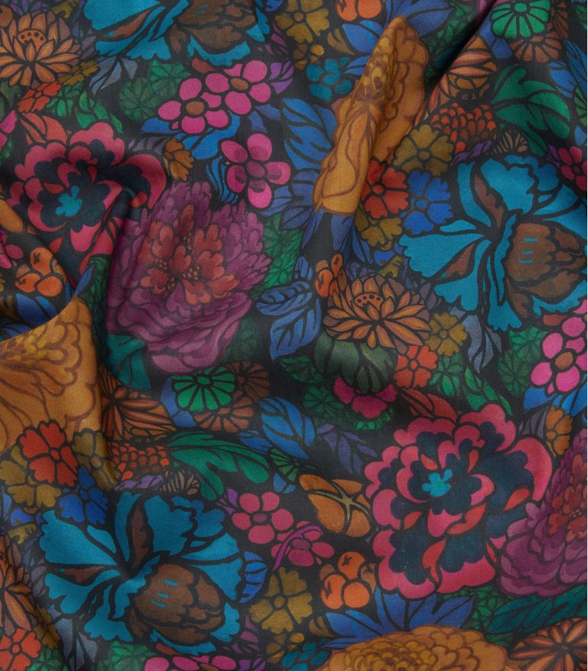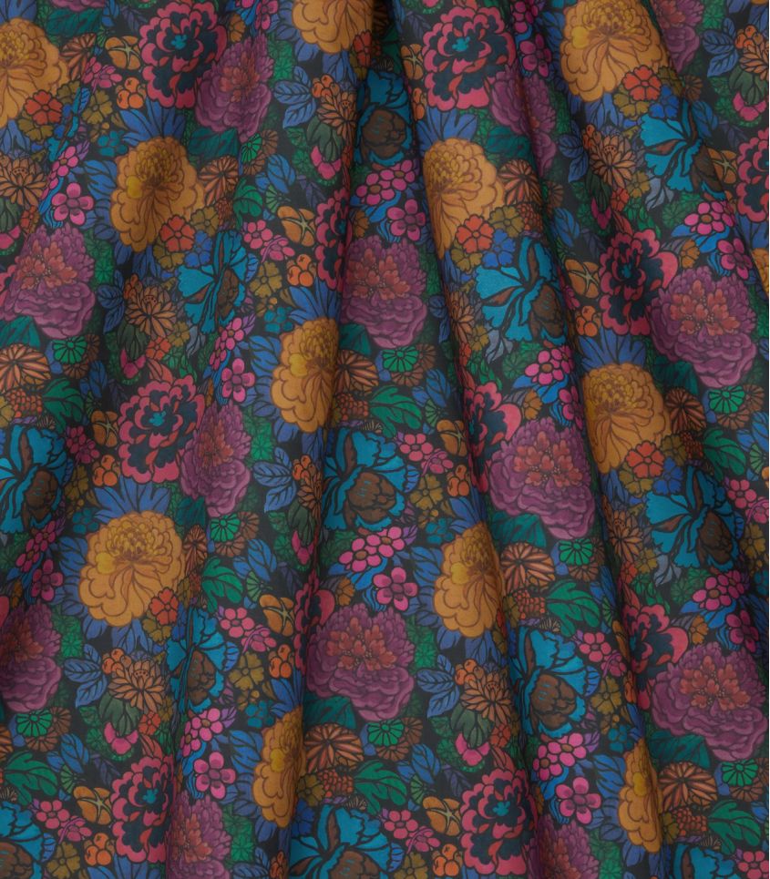 Tissu Liberty Fabrics, inspiré du lien fort entre Liberty et le Japon, Heritage Garden s’inspire d’une œuvre d’archive célébrant l’esthétique décorative asiatique. Son motif luxuriant dévoile fruits dissimulés, chrysanthèmes, pivoines et fleurs japonaises stylisées, dans une palette riche et profonde.
