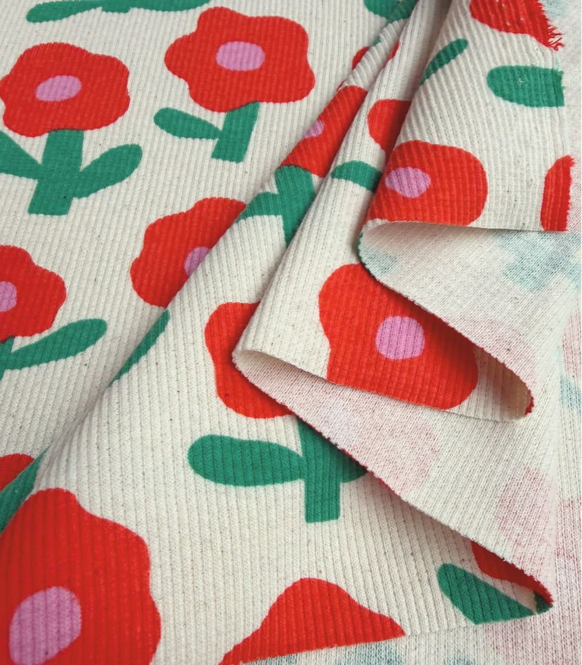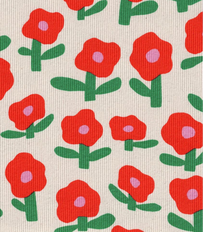 Tissu maille côtelé - Fleur Pop Rouge