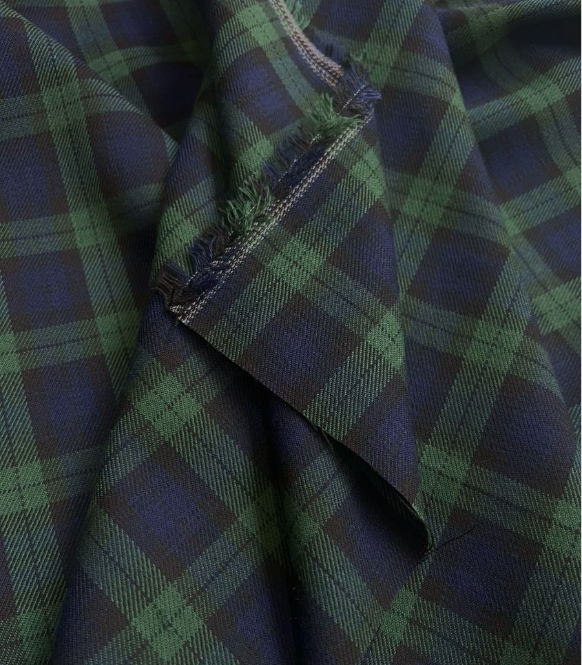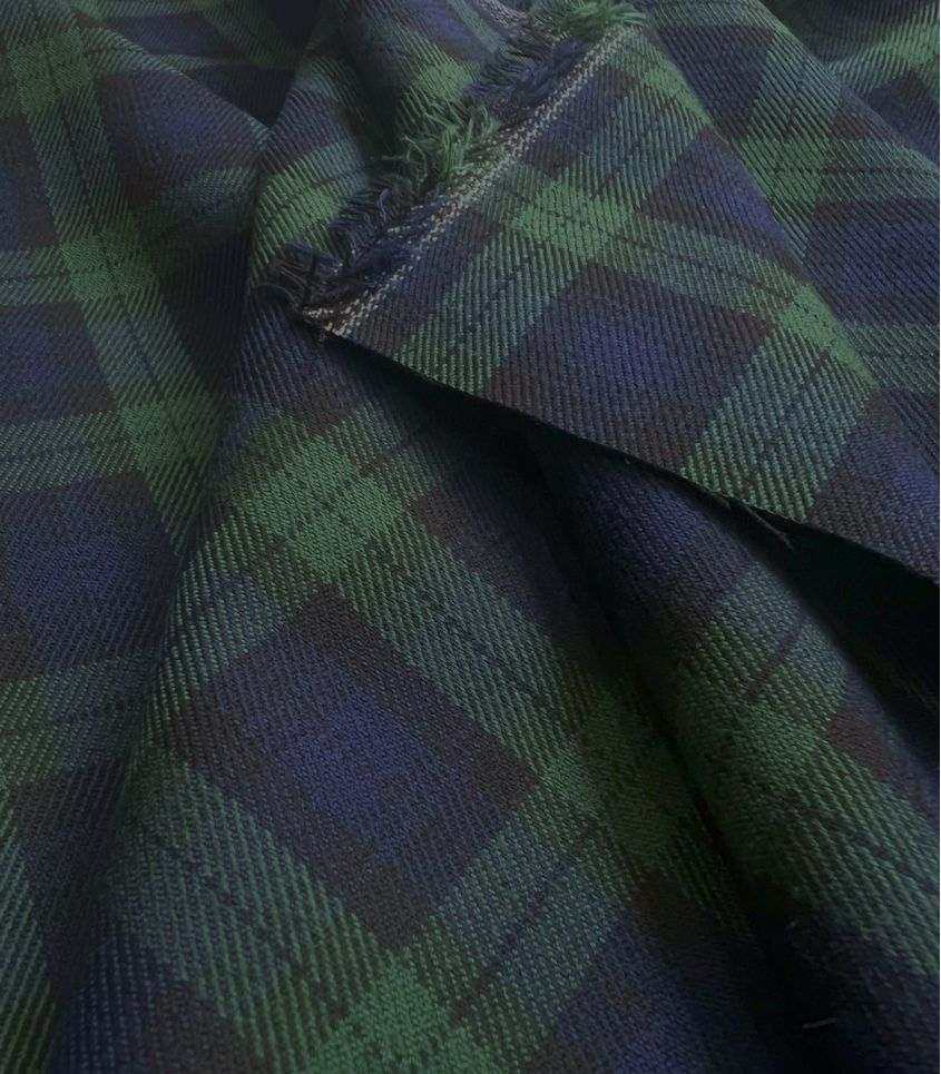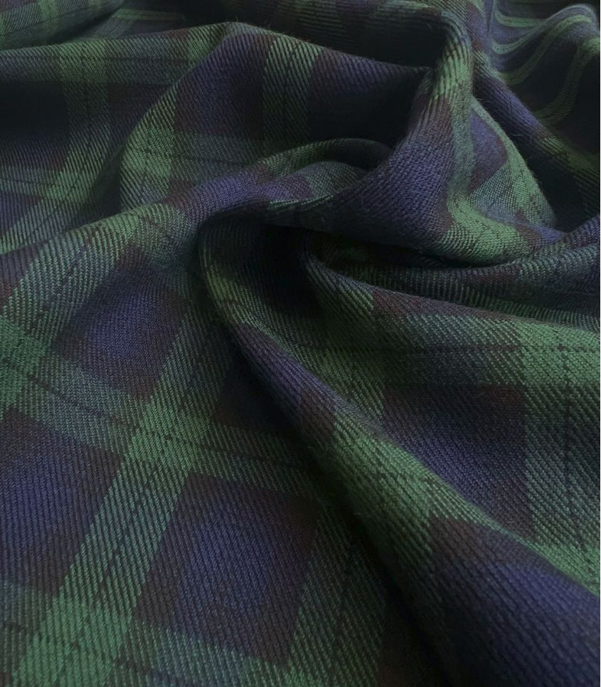 Plongez dans l’esprit écossais avec ce tartan aux carreaux élégants mêlant vert profond, noir et bleu marine. Sa composition en viscose lui confère une souplesse agréable, tout en gardant suffisamment de tenue pour vos créations.