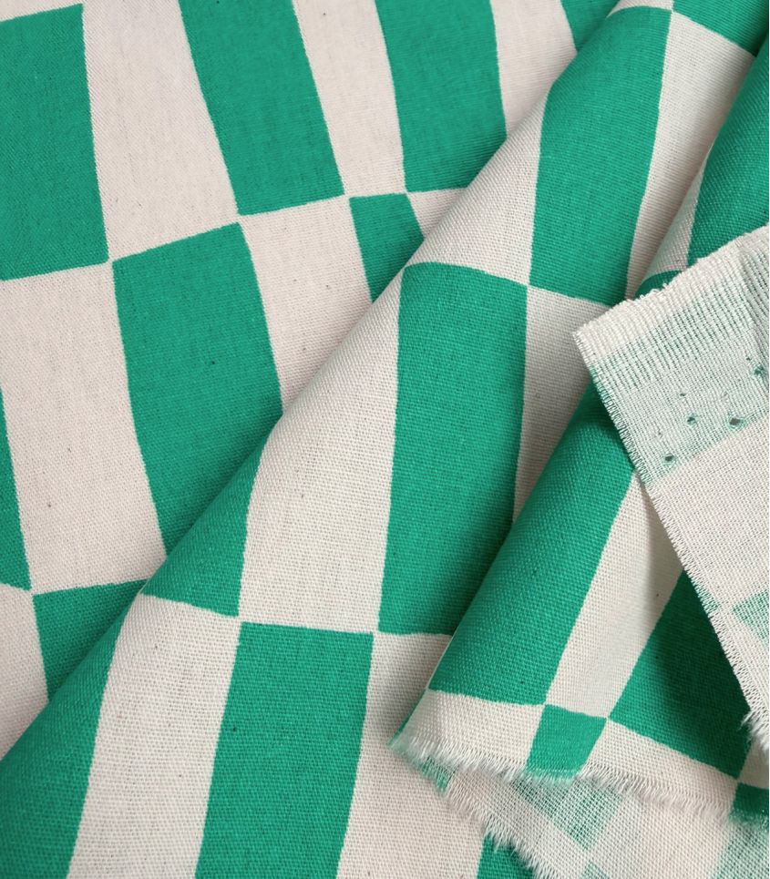 Un tissu en popeline de coton bio imprimé d'un motif géométrique vert émeraude. Son motif structuré apporte du rythme tout en restant délicat, idéal pour créer des pièces originales tout en étant faciles à porter et à associer. Ce tissu invite à des créations lumineuses, ancrées dans le quotidien.