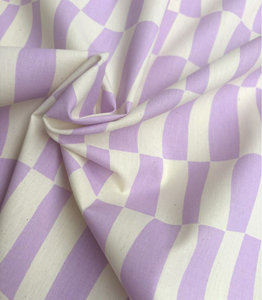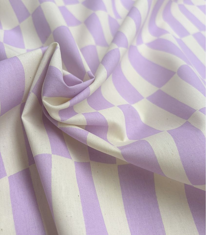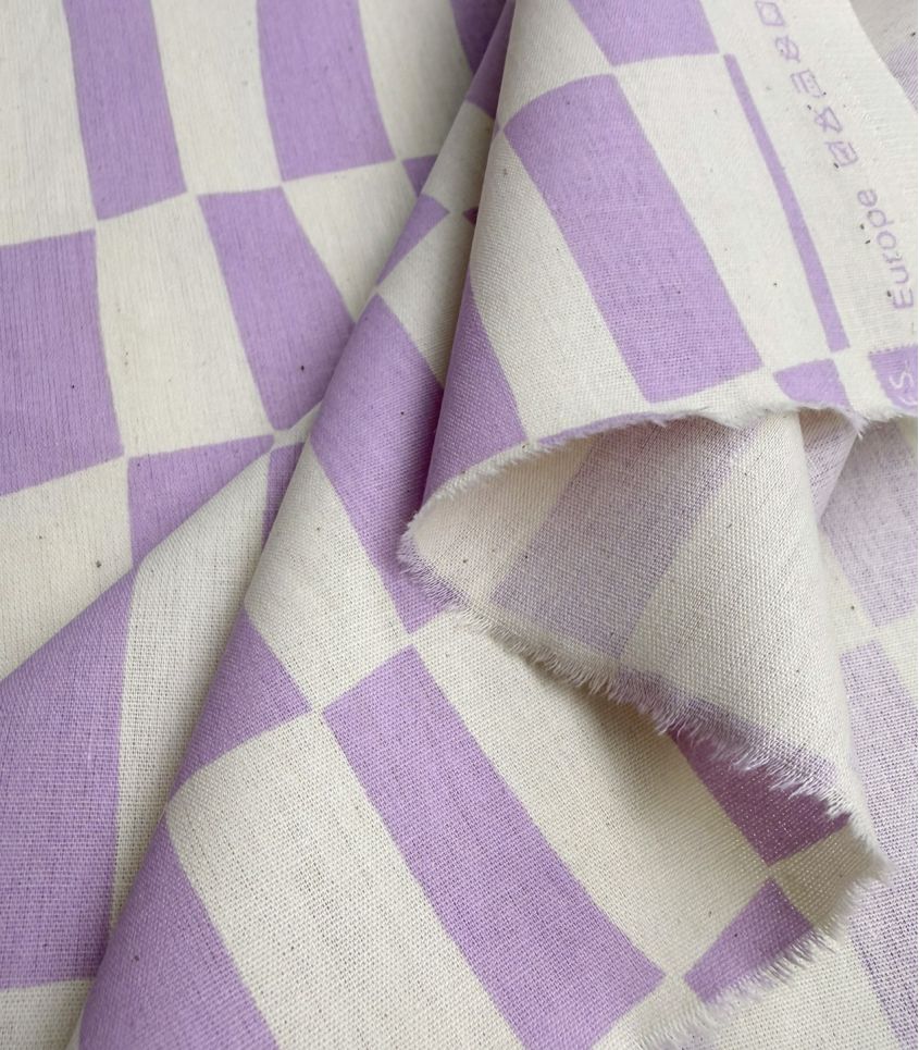 Un tissu en popeline de coton bio imprimé d'un motif géométrique lilas. Son motif structuré apporte du rythme tout en restant délicat, idéal pour créer des pièces originales tout en étant faciles à porter et à associer. Ce tissu invite à des créations lumineuses, ancrées dans le quotidien.