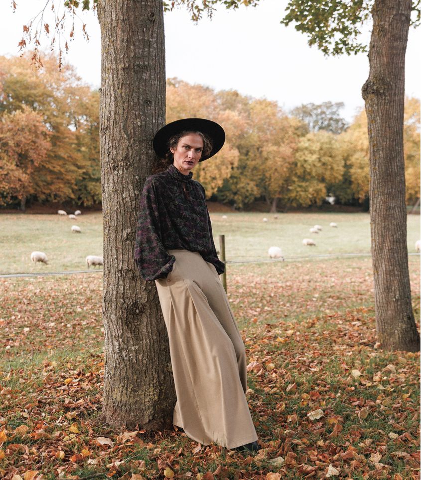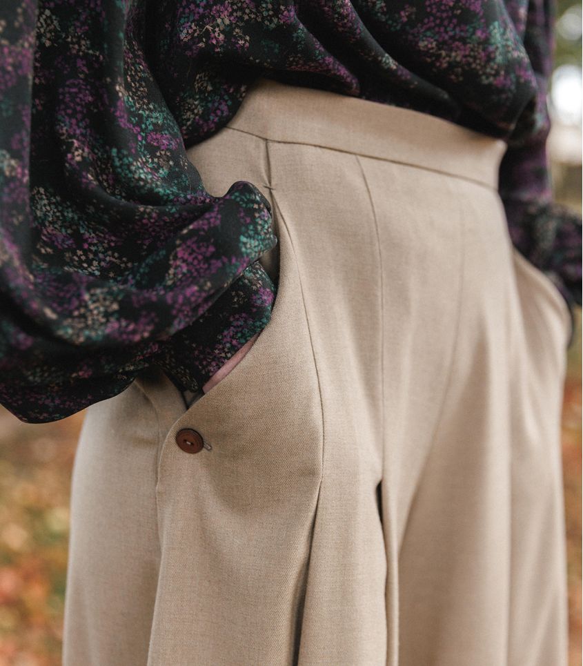 Twill de bamboo et polyester recylé beige chiné.Tissu fluide et lourd avec un peu d'élasthanne ce qui apporte au tissu un peu d'élasticité et de confort. Tissu se froissant peu idéal pour réaliser des pantalons ou robes, jupes ...