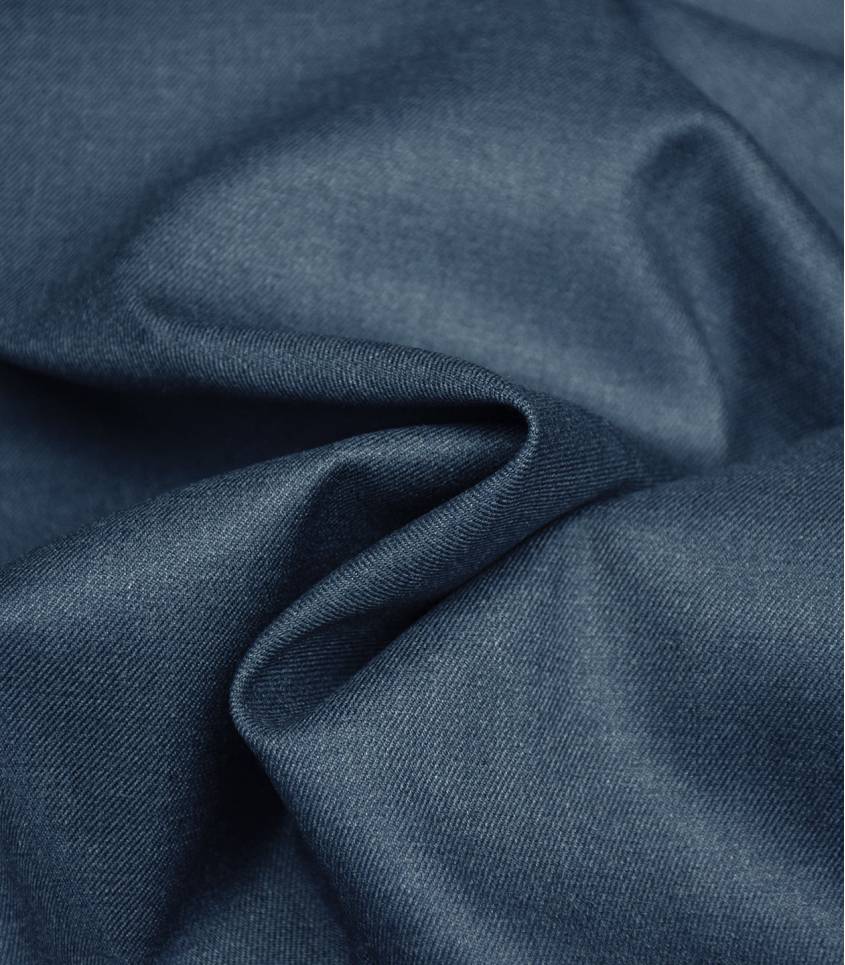 Twill de bamboo et polyester recylé Bleu gris foncé.Tissu fluide et lourd avec un peu d'élasthanne ce qui apporte au tissu un peu d'élasticité et de confort. Tissu se froissant peu idéal pour réaliser des pantalons ou robes structurées...