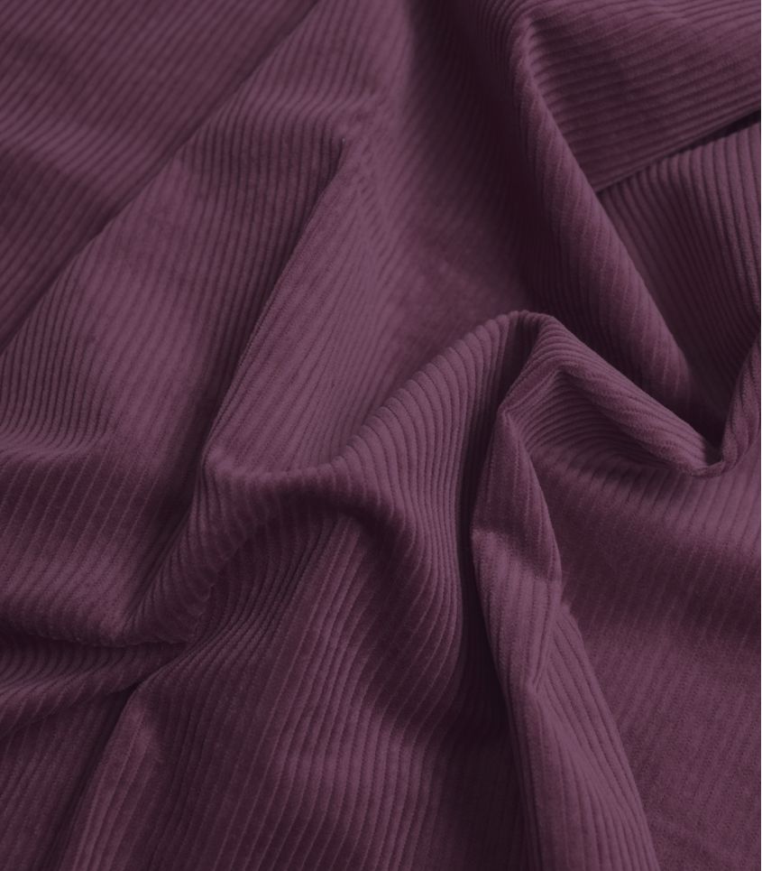 Velours côtelé souple. Tissu d'une très jolie qualité, doux et surtout bien souple. A utiliser pour la réalisation de jupes, pantalons, vestes... Coloris Mulberry (violet prune)