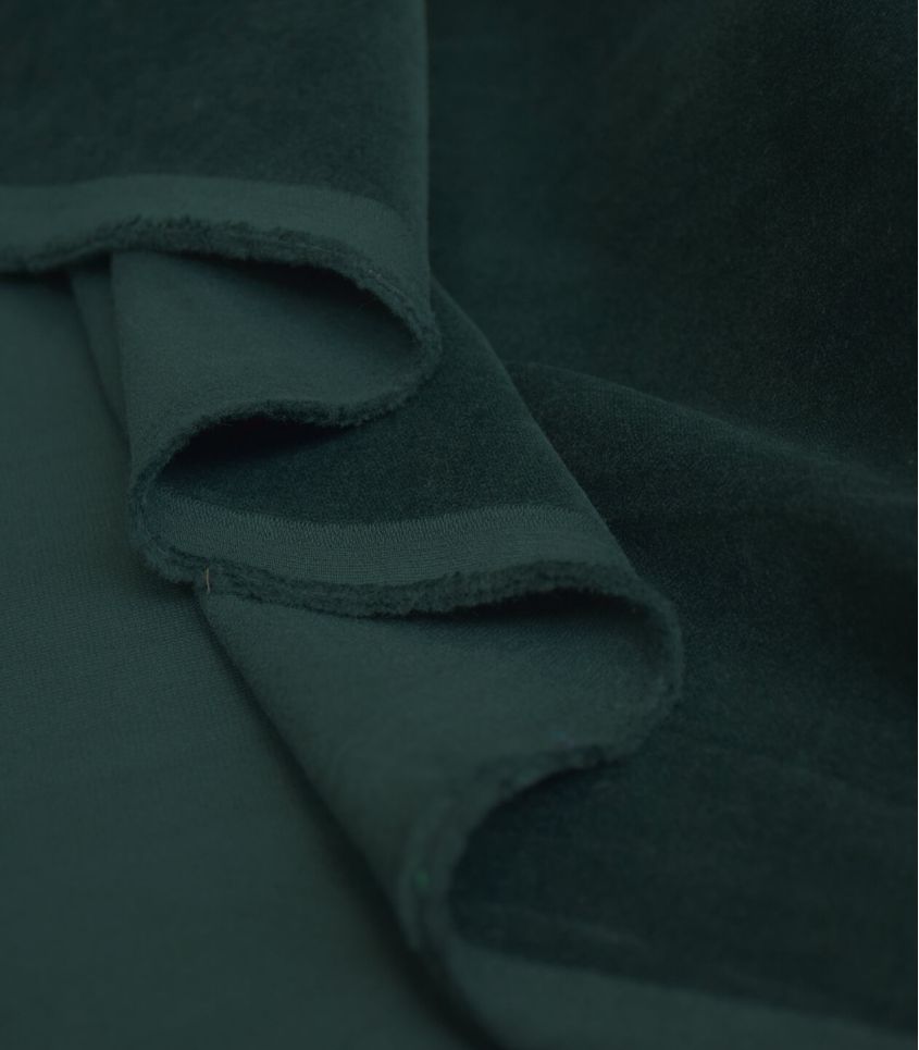 Plongez dans la profondeur végétale de Mystic Green, un velours lisse stretch à la teinte envoûtante, entre mousse sombre et forêt interdite.