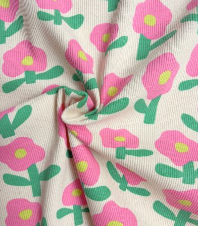 Tissu maille côtelé - Fleur Pop Rose