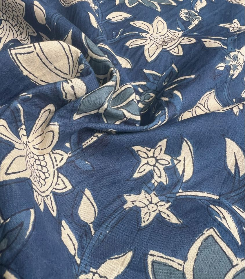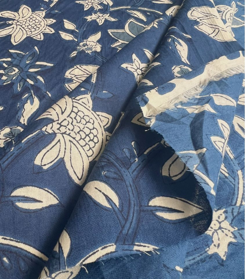 Un tissu en voile de coton léger au charme artisanal, inspiré des block prints indiens.